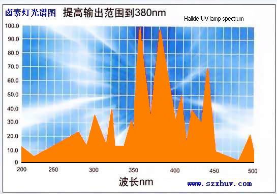 強紫外線高壓水銀燈(簡稱UV燈)由高品質的純石英管材制造而成,使紫外線能高程度及大量的穿透,其弧長度/發光長度可由5厘米至300厘米不等。常見功率為每厘米30W至200W,超大功率UV燈一般在每厘米200W或以上操作,該燈光譜有效范圍在350-450nm之間,主波峰為365nm,有700多個品種,功率由100w-25kw.UV燈的壽命一般指其能維持足夠的能量進行操作的時間,在此期間其能量逐漸衰減直至低于可接受的范圍為止,一般情況標準的UV燈能放射足夠的UV能量達800-1000小時。